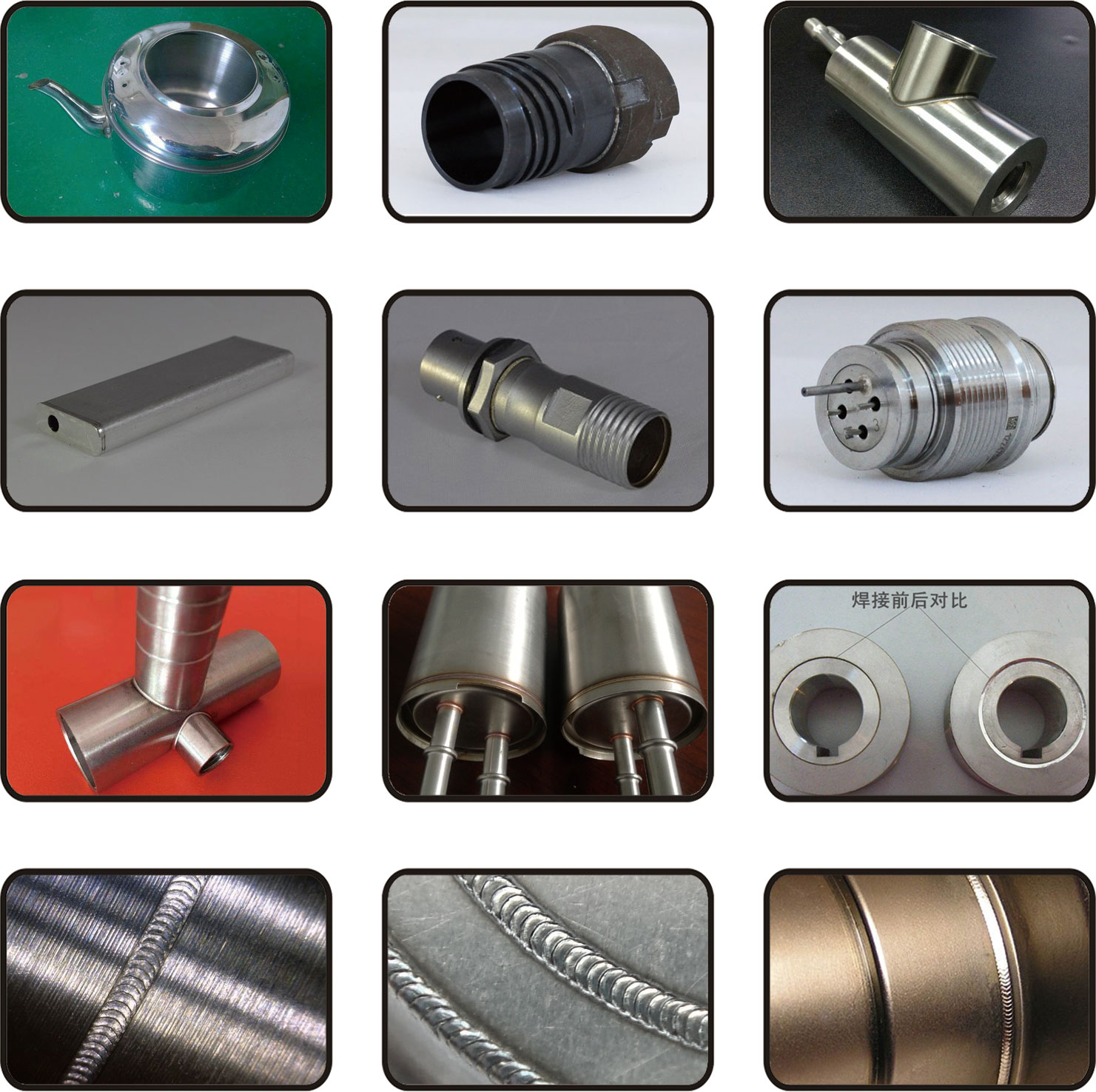 廣泛應用于于水壺、真空杯、不銹鋼碗、門把手、電器配件、濾清器、油嘴、不銹鋼制品、高爾夫球頭、鋅合金工藝品等焊接